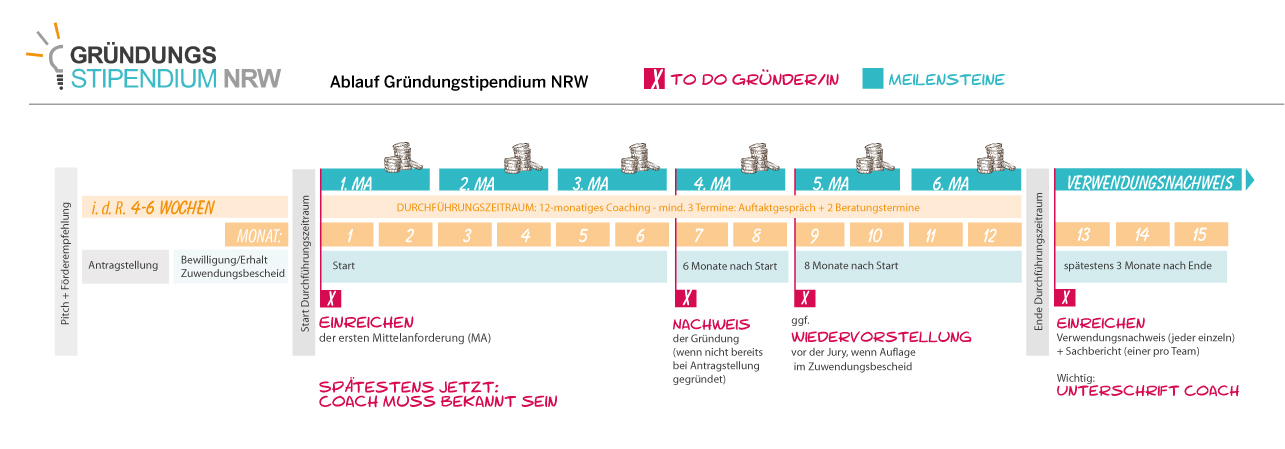 Spickzettel: Ablauf des Gründungsstipendium NRW