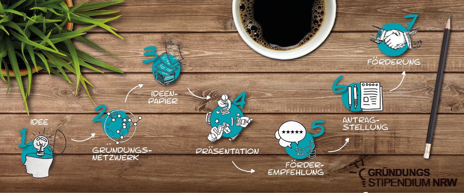 In sieben Schritten zum Gründungsstipendium NRW: